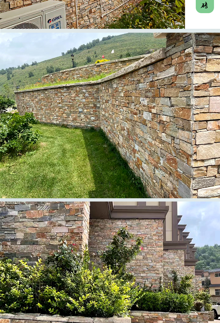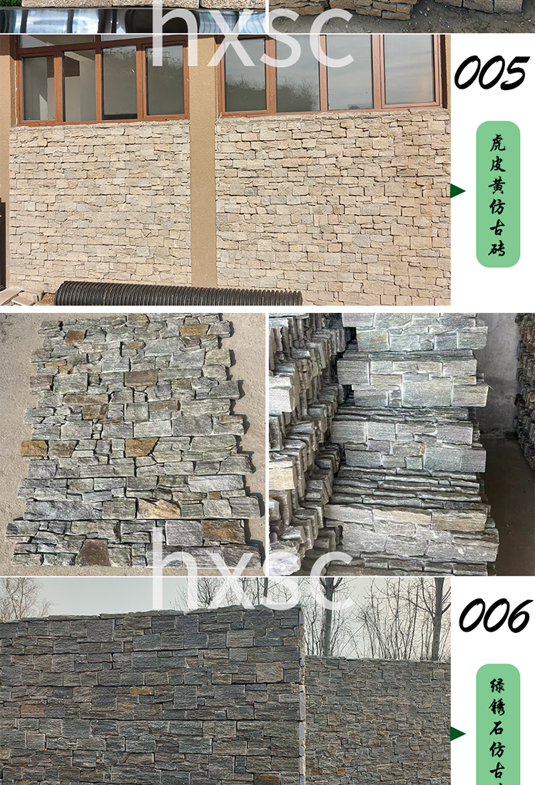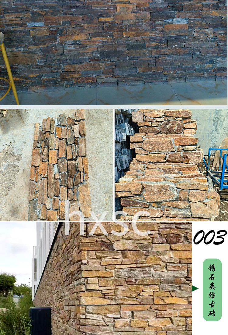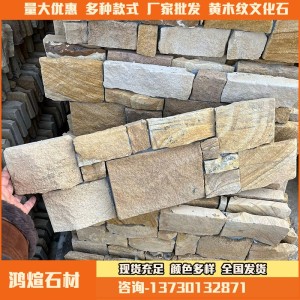 别墅仿古天然外墙文化石虎皮黄黄木纹复古不规则条形片状石材厂家